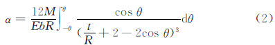 式中,α 是轉(zhuǎn)角;M 是轉(zhuǎn)矩;E 是材料彈性模量;I 是鉸鏈截面對z 軸的慣性矩。取出如圖2的微元進行積分,可得鉸鏈轉(zhuǎn)角公式為:.jpg)