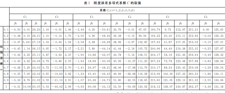 合式(8)可求得剛度誤差β2。對p=(0,0.3)范圍內(nèi)的誤差β2進行數(shù)值積分和多項式擬合,得到鉸鏈不同m 參數(shù)下誤差系數(shù)p 造成的剛度誤差為