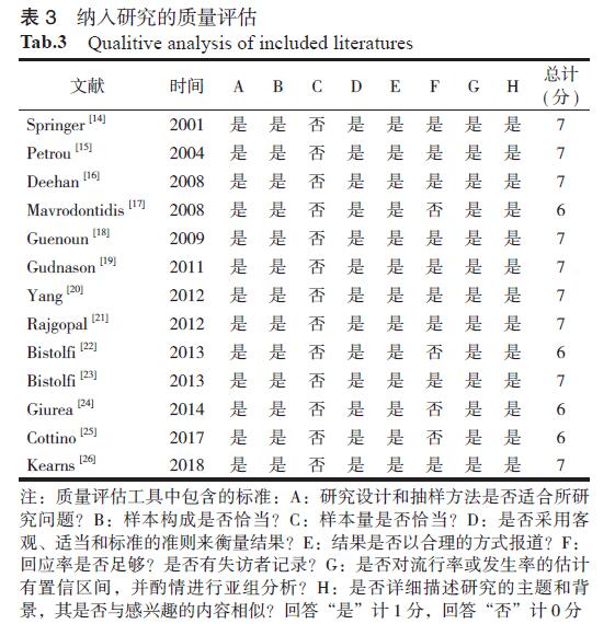 由2名研究者依據(jù)Loney等提出的疾病患病率或發(fā)生率研究質(zhì)量評價準則進行質(zhì)量評價,結(jié)果見表3。文獻質(zhì)量均屬于高質(zhì)量研究。