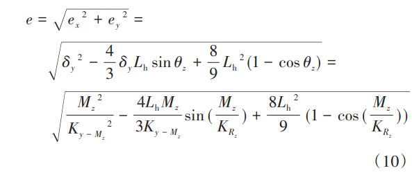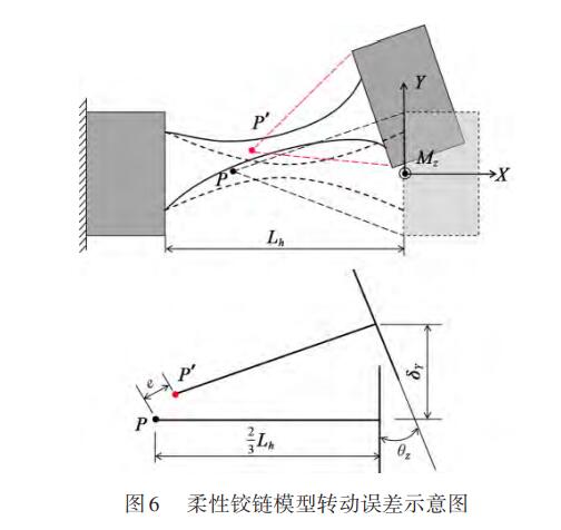 整體半輪型柔性鉸鏈的長度為Lh,在力矩MZ的作用下,通過幾何關(guān)系計算轉(zhuǎn)動誤差e可表示為: